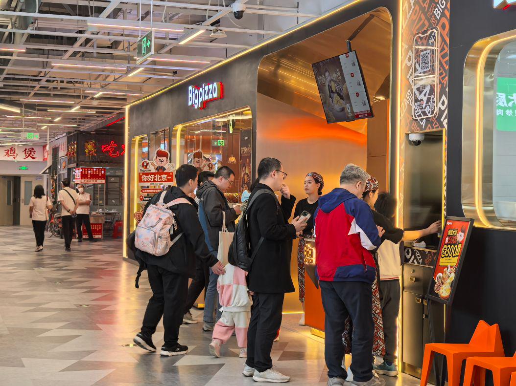 不少消费者在商场4层的比格比萨自助餐厅前等待用餐。