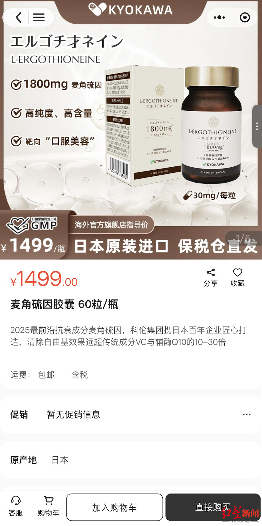 科伦永年销售的麦角硫因胶囊销售页面 图源:任意 Club小程序