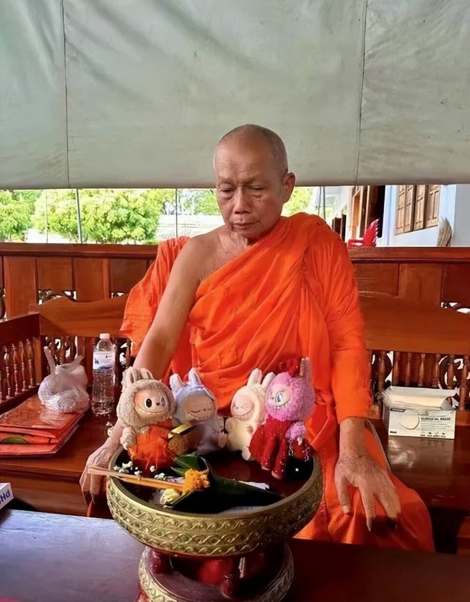 Labubu的玄学化也跟它在泰国的爆红脱不了干系。在这个国家里,目前约95%的人信上座部佛教,这也已经成为泰国文化中不可或缺的一部分。所以作为外交大使的北欧精灵来到这,也得先进佛堂被僧人大师开光。