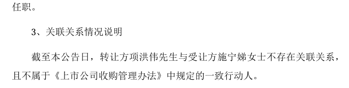 2023年8月,项洪伟拟将其持有的公司29.99%的股份(5467.24万股)协议转让给施宁娣。