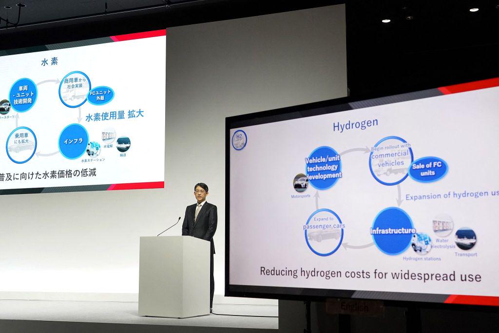 当地时间2025年5月8日,日本东京,丰田汽车首席执行官佐藤恒治在公司财报新闻发布会上发言。