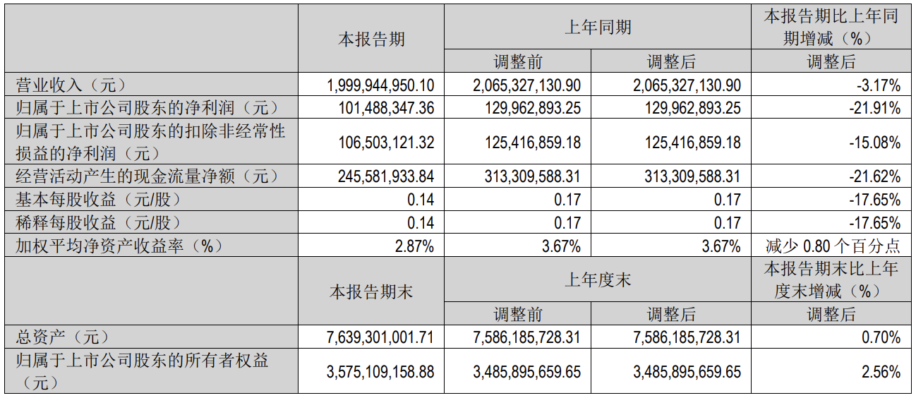 近期,小家电龙头企业九阳股份发布了2025年一季度财报,财报显示,第一季度九阳股份实现营收为20.00亿元,同比下降3.17%;实现净利润为1.01亿元,同比下降21.91%;扣非净利润为1.07亿元,同比下滑15.08%;经营现金流净额为2.46亿元,同比下降21.6%。