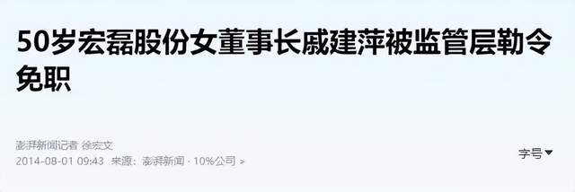 2014年7月,看不下去的浙江证监局勒令宏磊股份免去戚建萍董事长、总经理、董事会秘书、董事职务。