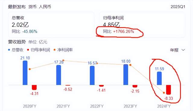 这家公司,2024年营收11.6亿,却亏了8.3亿,转年2025年一季度,营收才2亿,净利润却有4.85亿。