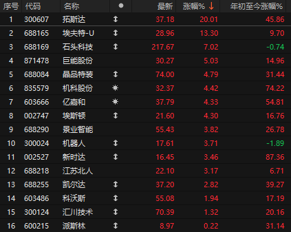 今天A股机器人板块暴涨,拓斯达涨停。