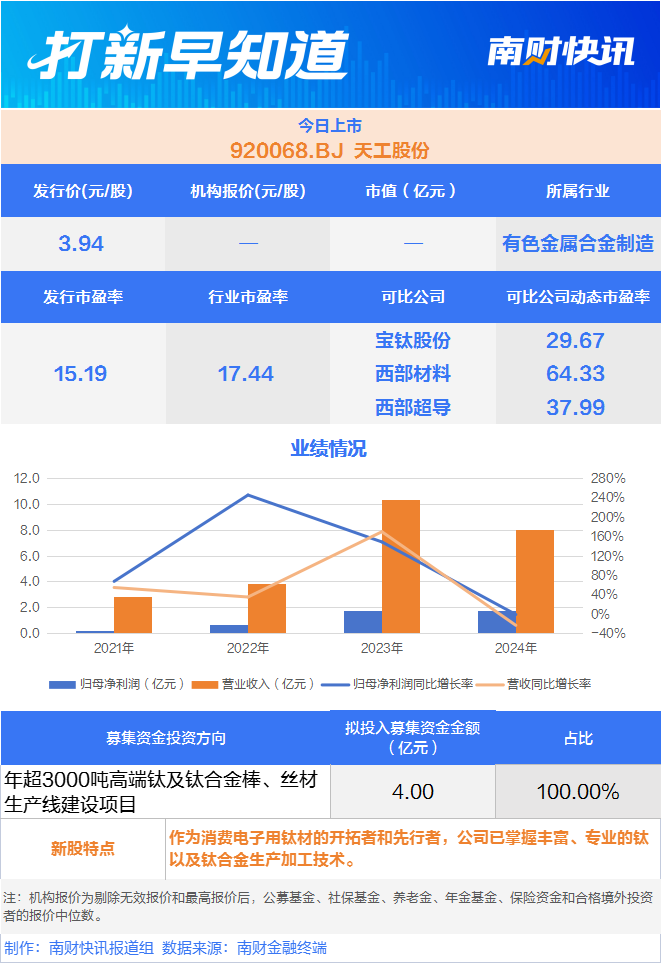 5月13日,有一只新股上市,为北交所的天工股份(920068.BJ)。