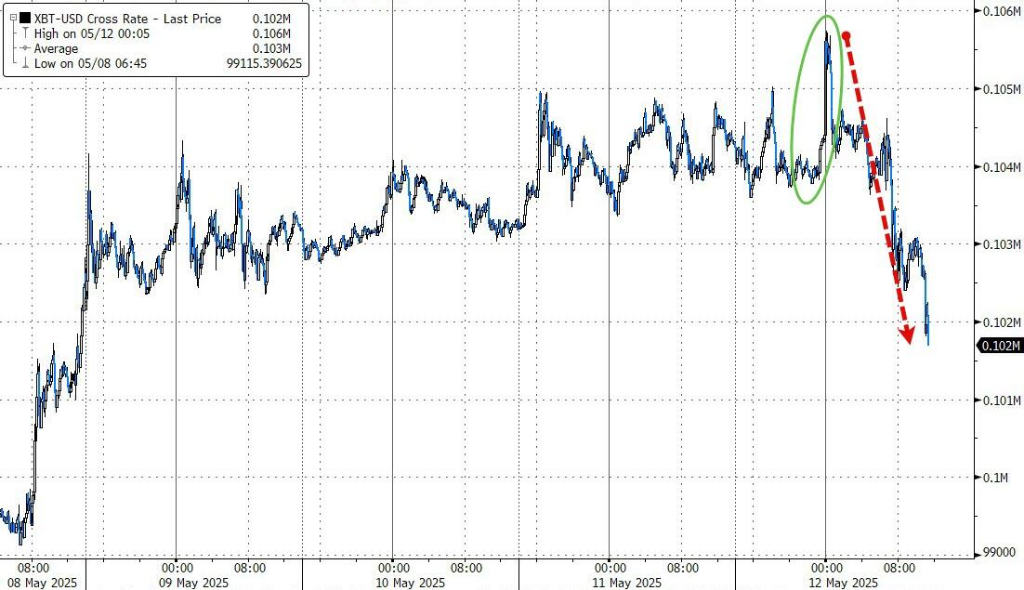 美联储降息预期显著降低,美元指数周一涨约1.5%。比特币遭受重创,在隔夜飙升至近10.6万美元之后,又回落至10.2万美元下方。