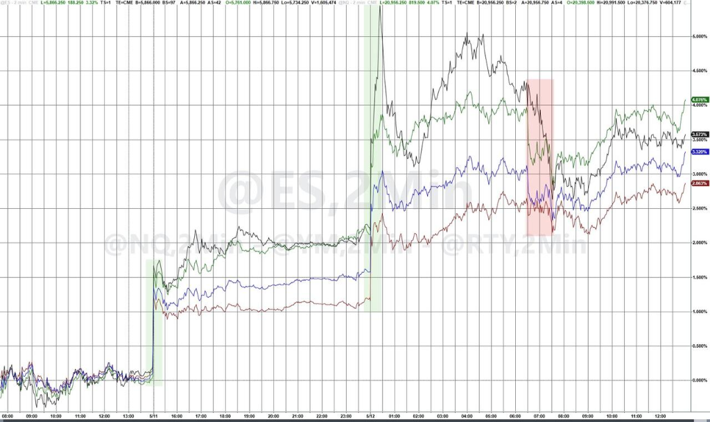 美股盘前,中国商务部发布中美日内瓦经贸会谈联合声明,美国将修改2025年4月2日第14257号行政令中规定的对中国商品(包括香港特别行政区和澳门特别行政区商品)加征的从价关税,其中,24%的关税在初始的90天内暂停实施,同时保留按该行政令的规定对这些商品加征剩余10%的关税。