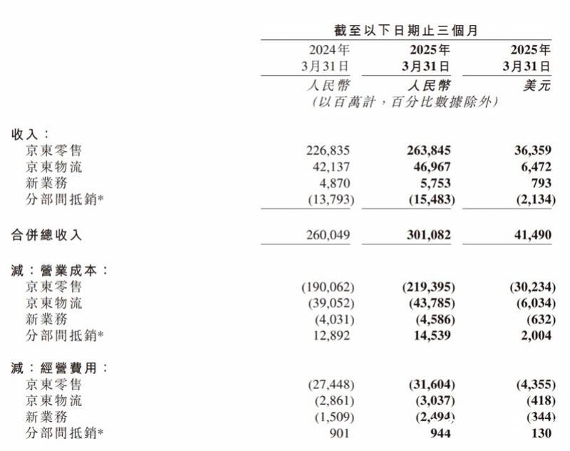 在京东收入来源中,新业务的收入从去年第一季度的48.7亿元增长至今年第一季度的57.53亿元,新业务主要包括达达、京东产发、京喜及海外业务。