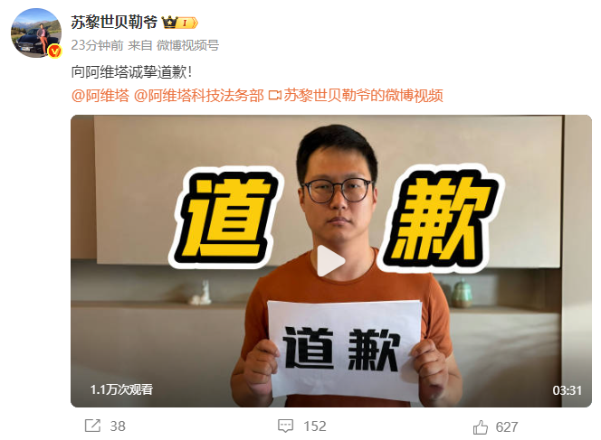 而在阿维塔直播测评以证清白,以及质疑此事的博主@苏黎世贝勒爷 发布道歉视频后,这场风波依然没有彻底平息。