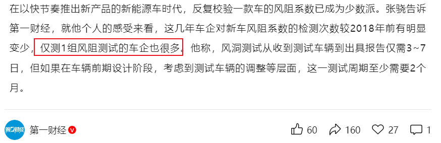 在新能源汽车企业普遍亏损的情况下,反复验证风阻系数,无疑成为一个沉重的负担。