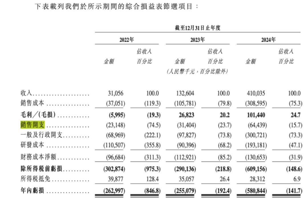 亏损背后,是希迪智驾的“三费”迅速增长,其中销售开支从2022年的2314万元涨至2024年的6443万元,一般及行政开支从6896万元涨至3亿元,研发成本从1.1亿元涨至1.9亿元。