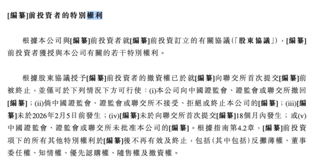 关于撤资权,在以下5种情况下可行使,包括:1.公司主动撤回上市申请;2.监管机构拒绝/终止上市;3.2026年2月5日前没完成上市;4.提交申请后18个月内没上市;5.最终没获得上市批准。