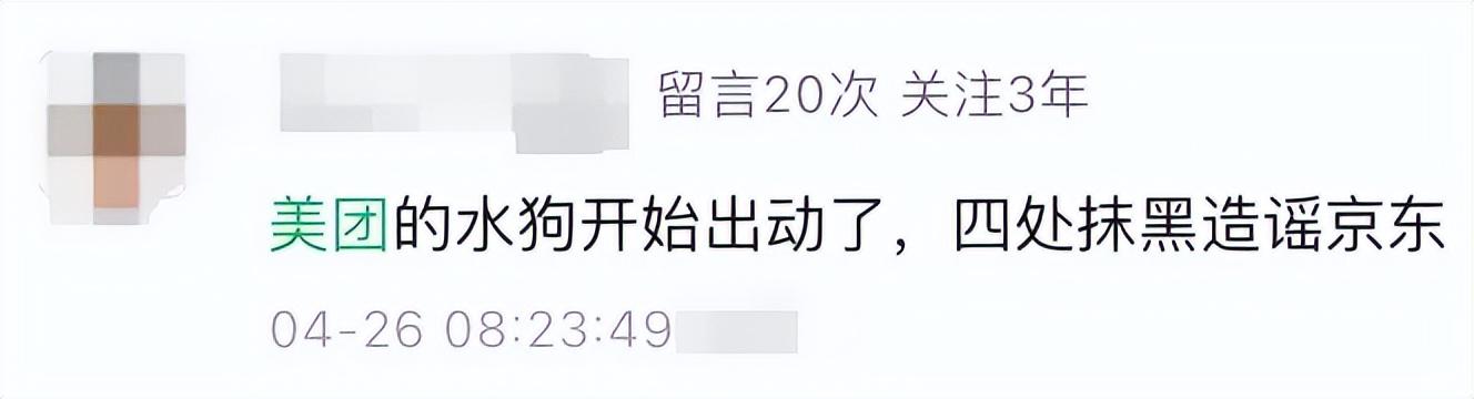 自媒体账号“小声比比”就专门发文提到,自己在文章中提到京东补贴政策变动之后,小商家在京东外卖官微评论区抗议的事,结果评论区被围攻,还有网友质疑其是竞争对手平台的“水狗”,四处抹黑造谣京东。