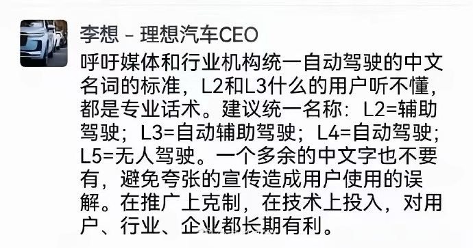 而在这场会议之前,理想汽车的CEO李想就已经呼吁,媒体和行业应该统一自动驾驶的标准,在推广上克制,在技术上投入。