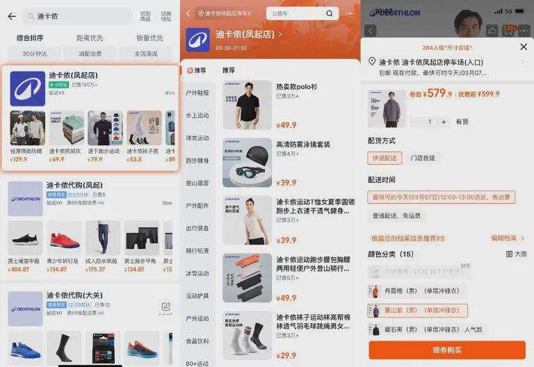 而驱动品牌打通全渠道的核心动力,在于场景融合能否带来实际增长效益。据公开数据显示,迪卡侬在入驻淘宝小时达后,订单量环比增幅显著,其中骑行装备、户外服饰等品类表现尤为突出:春季健身器材、登山露营装备、户外冲锋衣等商品成交量同比增幅超200%,一款户外野营扣环水杯成交量增长350%,新品户外大容量登山双肩包更是以450%的成交量增幅成为现象级单品。