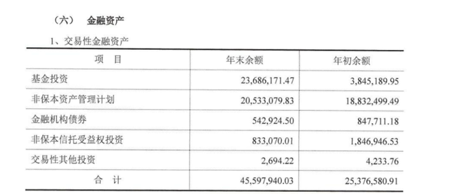 2024年末,龙江银行的交易性金融资产余额达到455.98亿元,同比暴增202.21亿元,增幅高达79.69%。具体来看,主要是基金投资余额实现大幅增长,2024年末为236.86亿元,较2024年初的38.45亿元增长超5倍。