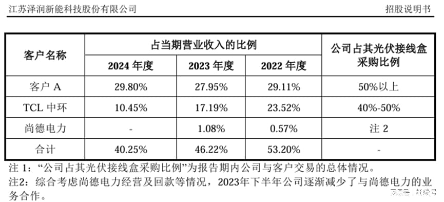 招股书显示,泽润新能与第一大客户自2019年即开始保持稳定合作关系,约占其光伏接线盒采购份额的50%以上,且未曾发生过纠纷争议的情况。2023年4月,双方已经就光伏接线盒的业务签订了为期3年(2023-2025年)的主要供应协议,未来仍将保持良好的合作关系。