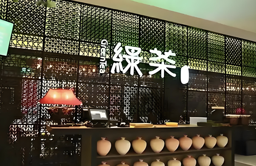 当时,绿茶餐厅延续了青旅的文化特色,在装修上采用了古风的设计风格,小桥流水、亭台帘幕,从门头到后厨,每处细节都彰显了江南风味。