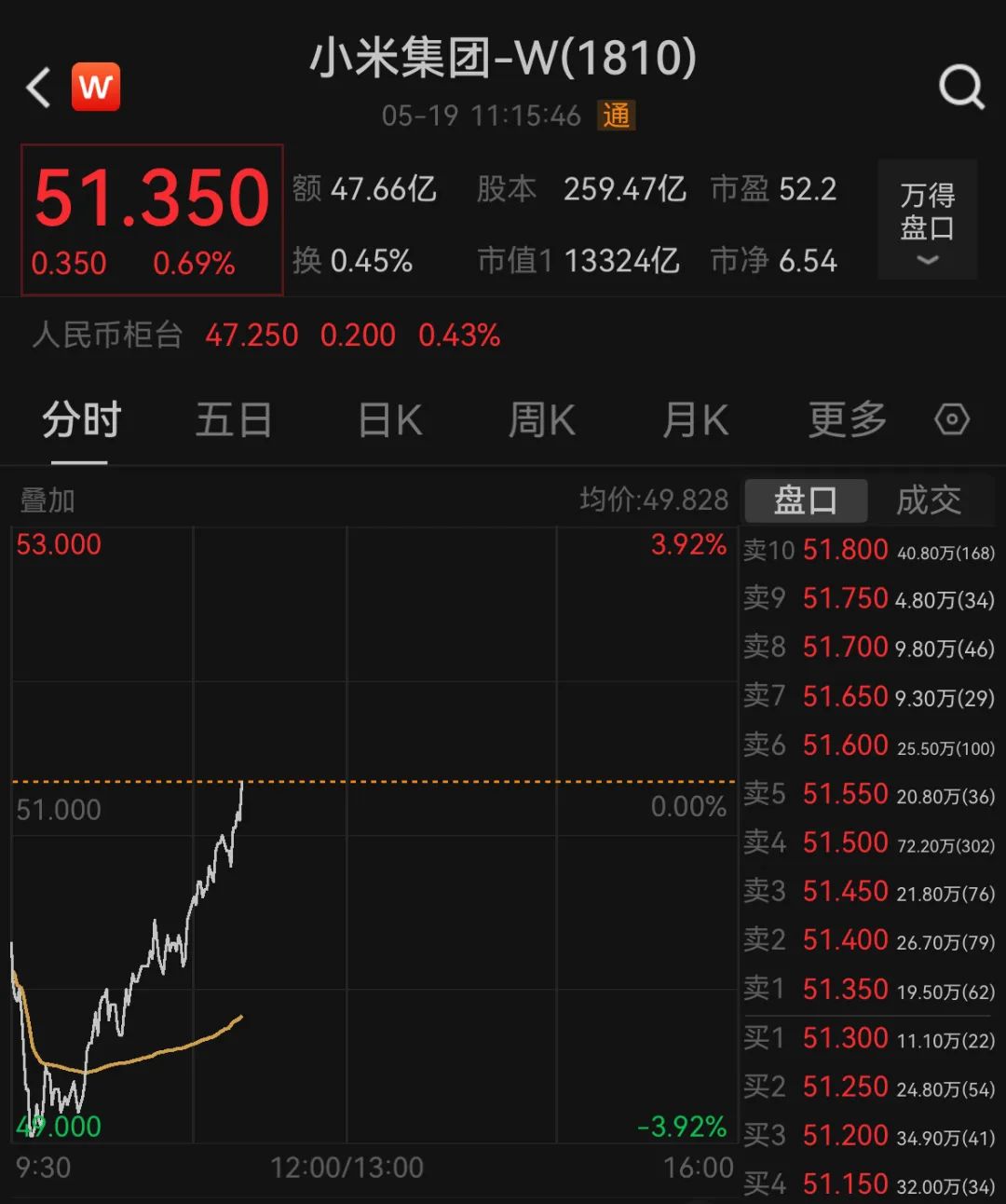 受上述发布会消息影响,港股小米集团转涨,早盘一度跌超3%。