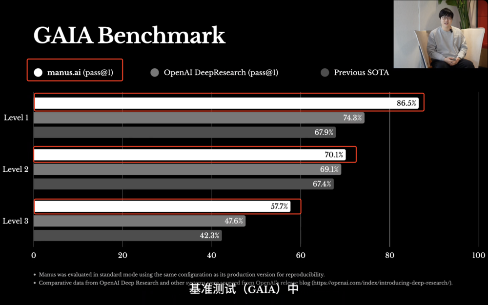 Manus是一款通用型AI智能体,核心理念是“知行合一”,与传统AI助手不同,它能够自主规划并执行复杂任务,直接交付完整成果。主要功能包括自主执行、多领域应用、多智能体协作架构以及记忆与学习能力,在GAIA基准测试中,Manus取得了SOTA(State-of-the-Art)的成绩,显示其性能甚至超越了OpenAI。