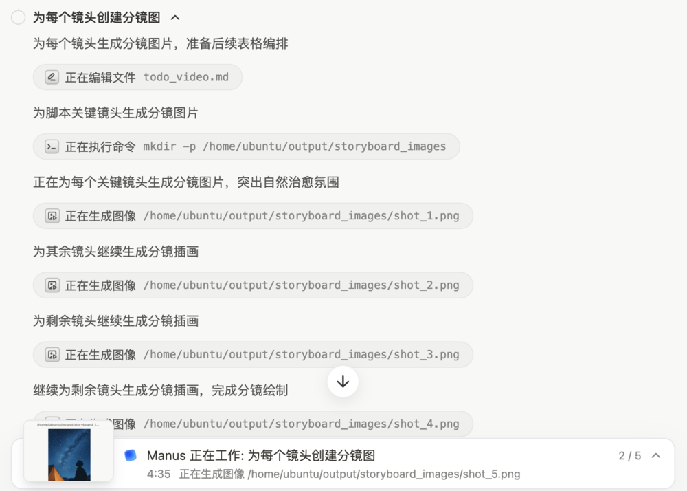 并且,由于我要求画出分镜,Manus还生成了png图片,看起来很未来可期。