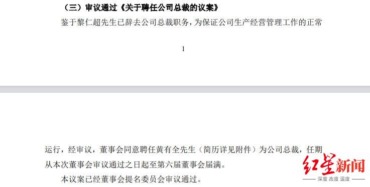 为保证董事会正常运作,公司同意补选黄有全为第六届董事会董事长,并聘任为公司总裁;同时提名周宁为第六届董事会非独立董事候选人,任期自审议通过之日起至第六届董事会届满。