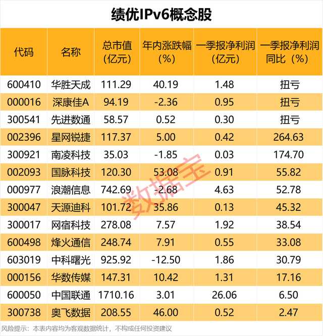 从今年一季度业绩来看,IPv6概念股中,有14只净利润录得正值,且较2024年同期实现增长。