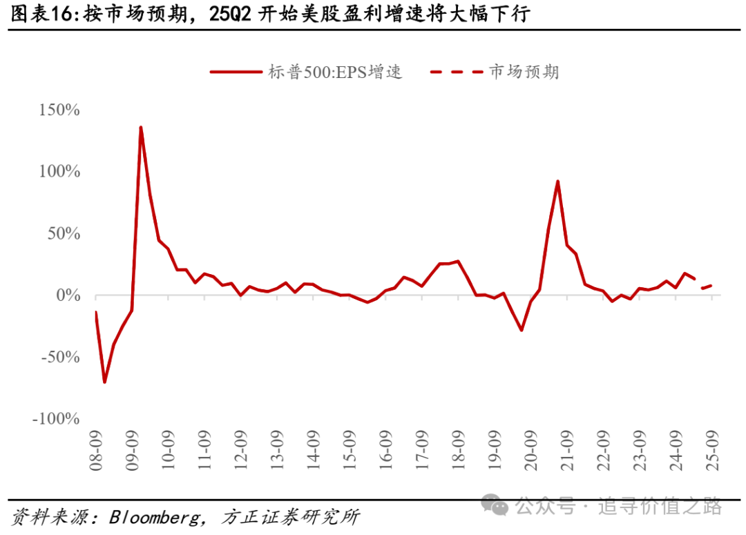 对于美股而言,按照我们此前的分析,二季度关税冲击对盈利的风险将显著暴露。按照市场预期推演,25Q2开始美股盈利增速将较24Q4-25Q1显著下滑,降至5.3%附近,关税对美股盈利的冲击在二季度将持续体现。