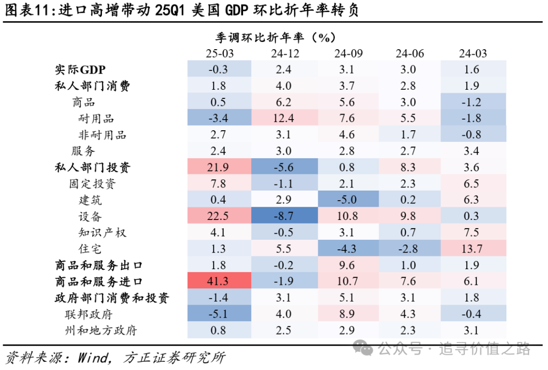 从数据层面看,特朗普关税对25Q1的美股盈利影响有限,很大程度源于进口商持续抢进口,企业仍处于消耗库存阶段。一方面本轮特朗普加征关税从2月开始,但最陡峭阶段为4月的对等关税政策,其冲击大概率要等到5月及以后体现,另一方面此前企业持续抢进口,目前或仍处于消耗库存阶段。从25Q1的美国GDP数据看,一季度进口环比折年率大幅提升至41.3%,带动Q1GDP转负,另一方面从集装箱高频数据看,从中国发往美国的集装箱数量在4月下旬后才开始大幅下降,意味着5月开始库存消耗问题或逐步显现,对美国经济以及上市公司的压力加大。