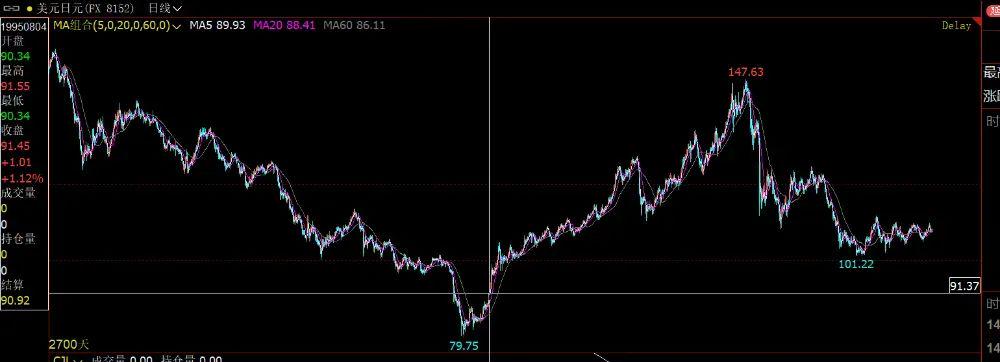 这中间,日元95年时的80附近贬值到98年的147左右,整个日本资产缩水极其严重。