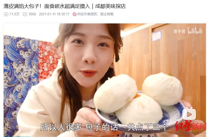 2021年1月11日,微博粉丝超千万的成都美食博主“密子君”上传了一条李与白包子铺探店视频。微博平台显示,目前该条视频有1.8万点赞,5075条评论,2552次转发。哔哩哔哩平台显示,该条视频有71万次播放。