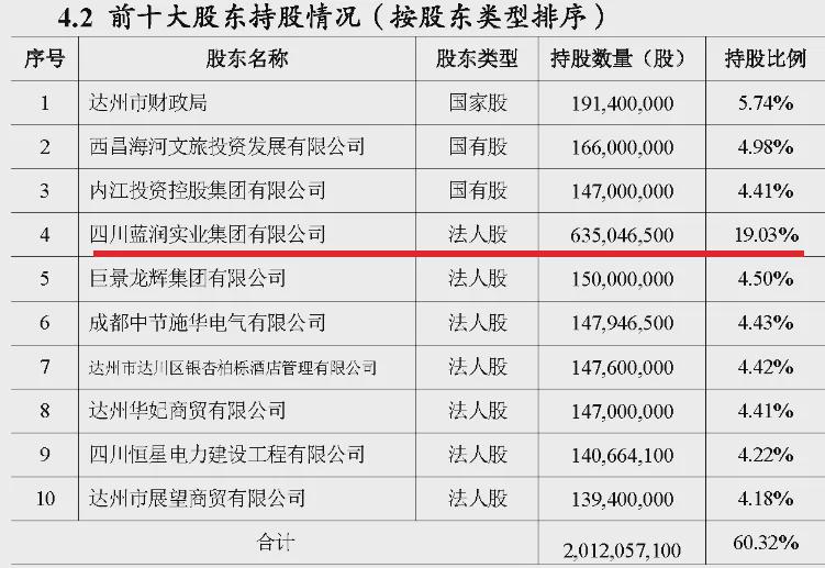 相较而言,近几年一直稳坐达州银行第一大股东且持股达到19.03%的的四川蓝润集团,经此次股权重组后,还尚有8.71%的持股比例。