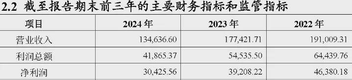 从达州银行自身来看,2024年实现营收13.46亿元,取得总利润4.19亿元、净利润3.04亿元,就近三年看呈现持续下滑态势。