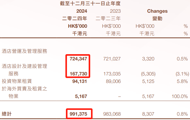 酒店运营及管理、酒店设计及建设去年收入8.92亿