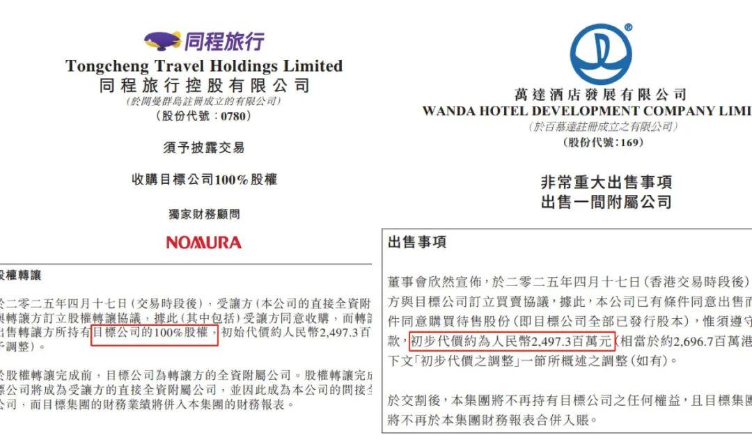 就在一个月前, 万达酒店发展把酒店管理业务卖给了同程旅行,卖了24.97亿。