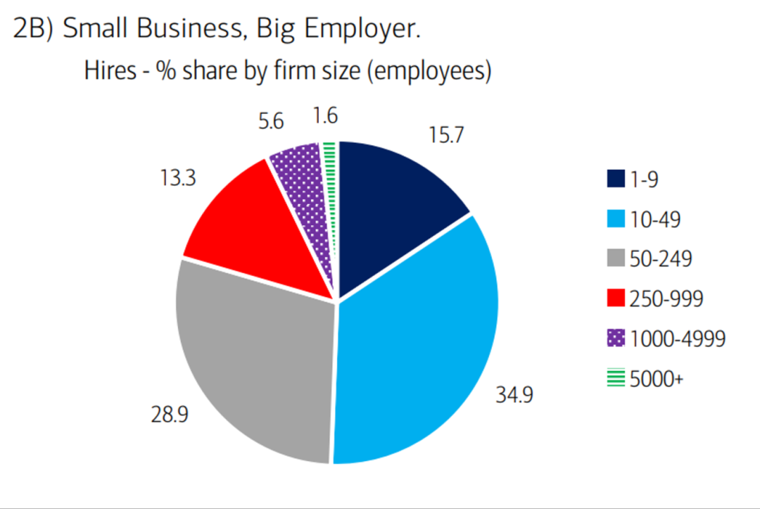 7.尽管美国大多数小企业为无雇员个体户,但雇佣员工的小企业却支撑了美国近一半的劳动力市场。数据显示,员工人数低于250人的企业在3月贡献了约80%的新增就业。根据美国小企业管理局,小企业整体对GDP的贡献达43.5%。在贸易不确定性上升之际,小企业对经济增长的支撑作用尤为关键。