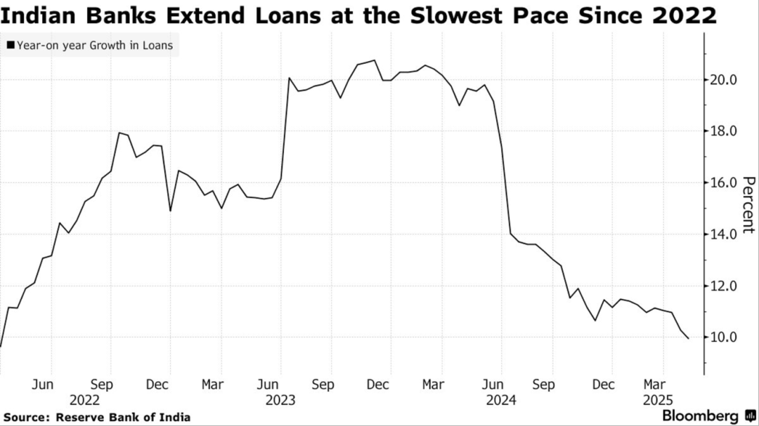 截至5月初,印度银行贷款同比仅增长9.95%至182.9万亿卢比(约2.1万亿美元),为2022年3月以来首次跌破10%,并创三年多来最低增速。企业在经济前景不明及债市融资成本更低的背景下趋于谨慎,贷款需求明显降温。