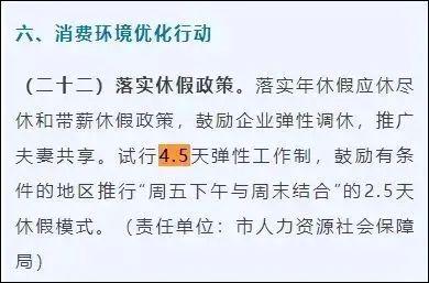 2020年3月,浙江省也曾印发《浙江省人民政府办公厅关于提振消费促进经济稳定增长的实施意见》,鼓励实施一周4.5天弹性工作制,支持有条件的机关、社会团体、企事业单位落实带薪休假制度。