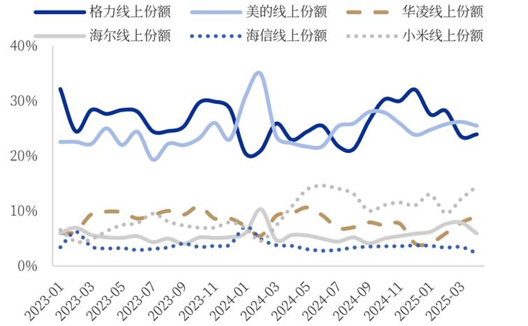 图:空调线上零售市场主要品牌份额变化 资料来源:AVC,银河证券