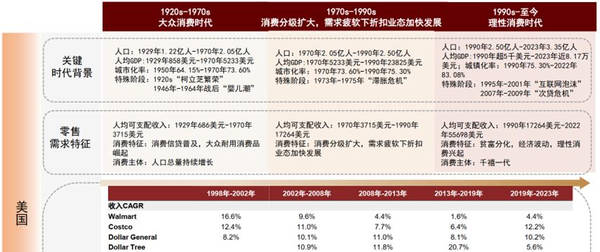 陷入通缩的日本,在1990年后,增长最快的额就是折扣零售,唐吉坷德成为大牛股,德国的硬折扣连锁店奥乐齐也有相似的发展历程。即使消费市场不断膨胀的美国,也呈现相同的规律,1990年代以来,美国居民更多地关注商品性价比,理性消费登上历史舞台,Costco被芒格视为非卖品。