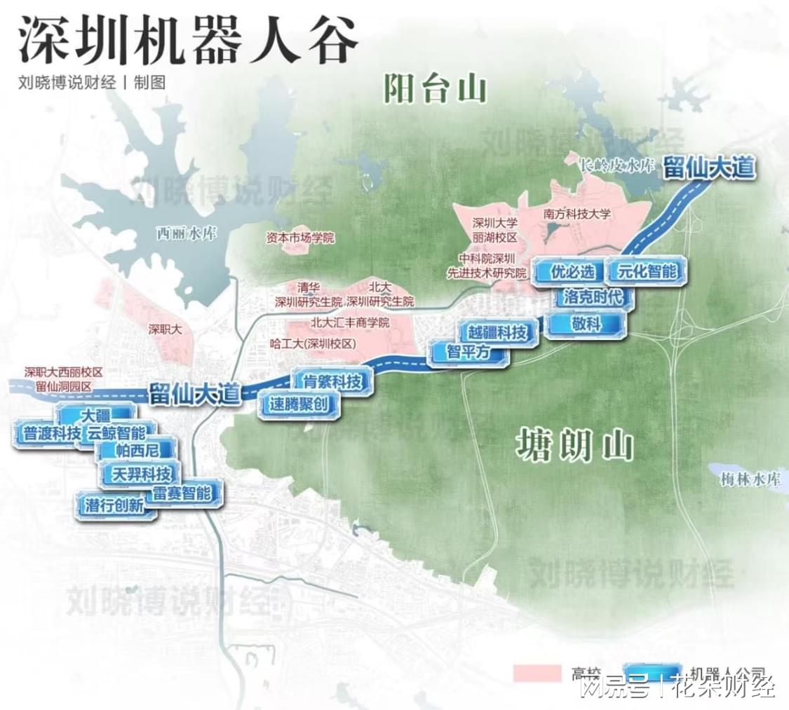 在深圳南山留仙大道,沿线串联留仙洞总部基地、深圳大学城等核心节点,聚集了大疆、优必选等5.7万家机器人企业,目标到2027年形成千亿级具身智能产业集群。