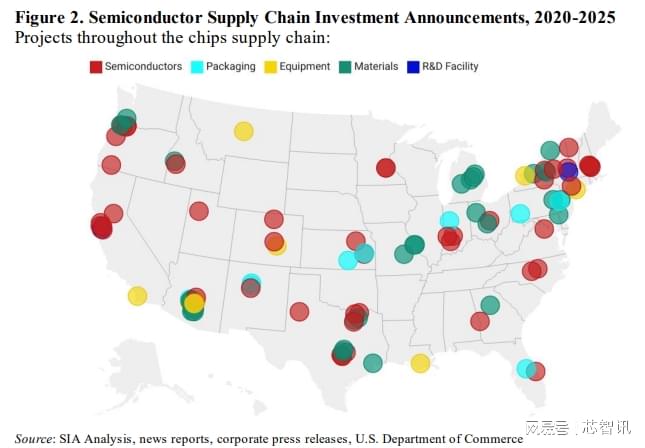 ▲2020-2025年半导体供应链在美投资分布。(来源:SIA)