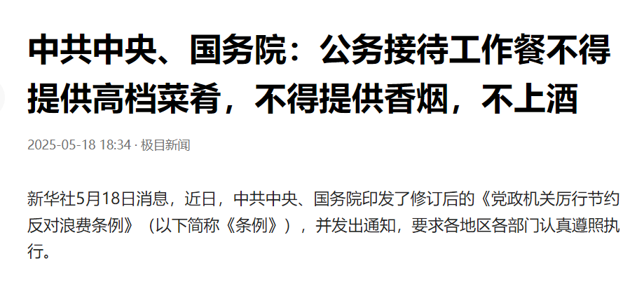 连茅台招待股东都不提供酒水了,作为国企,自然应该有这个觉悟,但也可见落实规定的力度,强到何等程度。