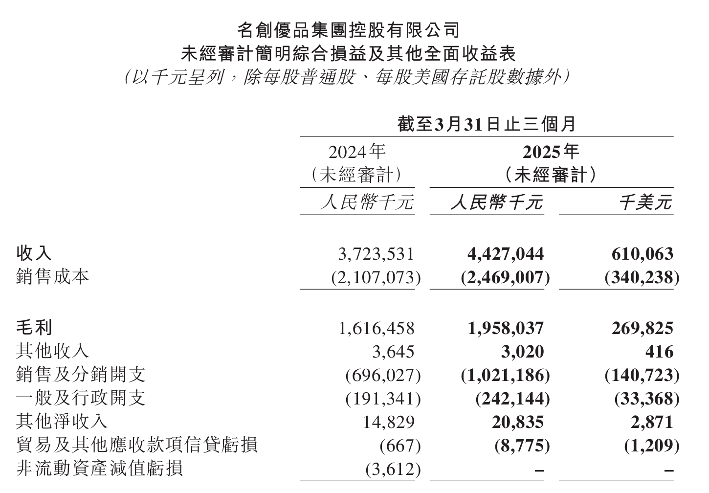 财报显示,今年一季度,名创优品销售及分销开支同比增长46.7%至10.21亿元,主要源于海外直营店租金、折旧及摊销成本大幅攀升;一般及行政开支也同比增长26.6%至2.42亿元。此外,IP授权费用投入同比提升39.6%。