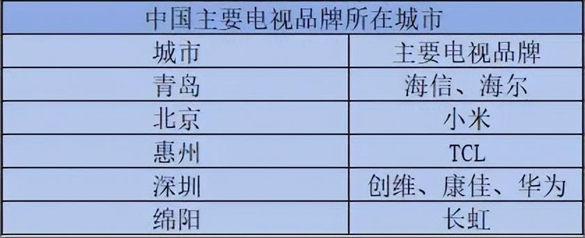 中国主要电视品牌所在城市