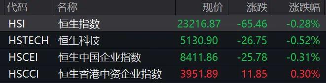 港股方面,恒指跌0.18%,医药生物板块走高。截至午间收盘,恒指报23241.23点,跌0.18%,恒生科技指数报5127.78点,跌0.58%。医药生物、农业产品板块涨幅居前,汽车、黄金及贵金属、半导体板块下挫。