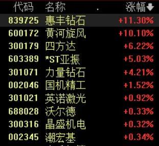 黄河旋风涨停,惠丰钻石涨逾11%,四方达、力量钻石等跟涨。