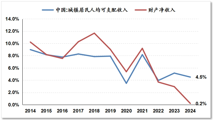 消费是收入的函数,提振消费的重要前提是改善居民收入。一个时期以来,促销费政策力度不断加大但居民可支配收入增速走低,成为一对不可忽视的矛盾。目前我国居民收入由工资性收入、经营性收入、财产性收入和转移性收入构成。鉴于宏观环境和企业经营现状,短中期内居民工资性和经营性收入大幅提升的可能性较小;而增加养老金和保障性收入对转移性收入仅能起到稳定的作用。现实地看,当前和未来一个时期,增加居民财产性收入或许可以成为提振居民消费能力和信心的重要途径。在我国,居民财产性收入的主要来源包括不动产(房地产)、理财和股票三个市场。这三大资产对居民财产性收入的影响是决定性的。