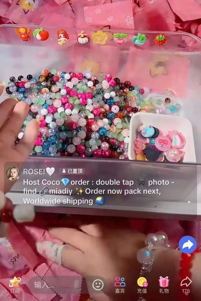 宋宇今年大学毕业,尽管水晶生意只是副业,但遇到大订单时,一个月就能挣上万元。他经常刷TikTok的水晶直播,有个叫“Coco shop”的博主把直播间打造成粉嫩少女风,只卖一包包的散珠,场场都有1000人以上的在线人数。宋宇打算效仿开启TikTok直播,“倘若发展得好,我就直接当主业做了。”